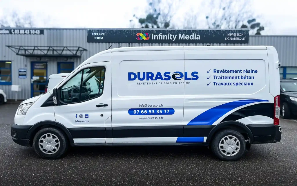 À Fouchy, proche de Sélestat, de plus en plus d’entreprises comme DURASOLS, entrepreneur spécialisé dans les revêtements de sol, misent sur le flocage complet d’un camion utilitaire pour se démarquer. Imaginez : votre véhicule qui roule en permanence comme une pub géante ! C’est exactement ce que nous avons réalisé pour DURASOLS. Notre équipe chez Infinity Media a transformé leur camion en véritable ambassadeur mobile. Et ça marche.