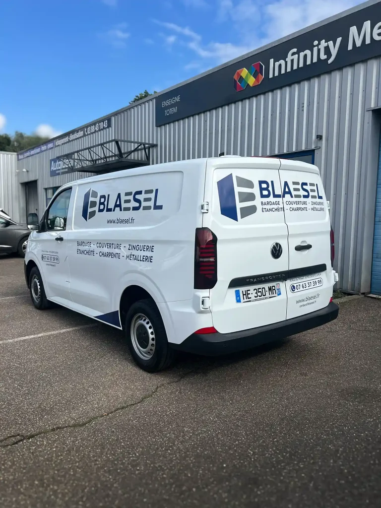 Véhicule professionnel BLAESEL après pose du marquage, alliant visibilité et identité de marque dans le Bas-Rhin.