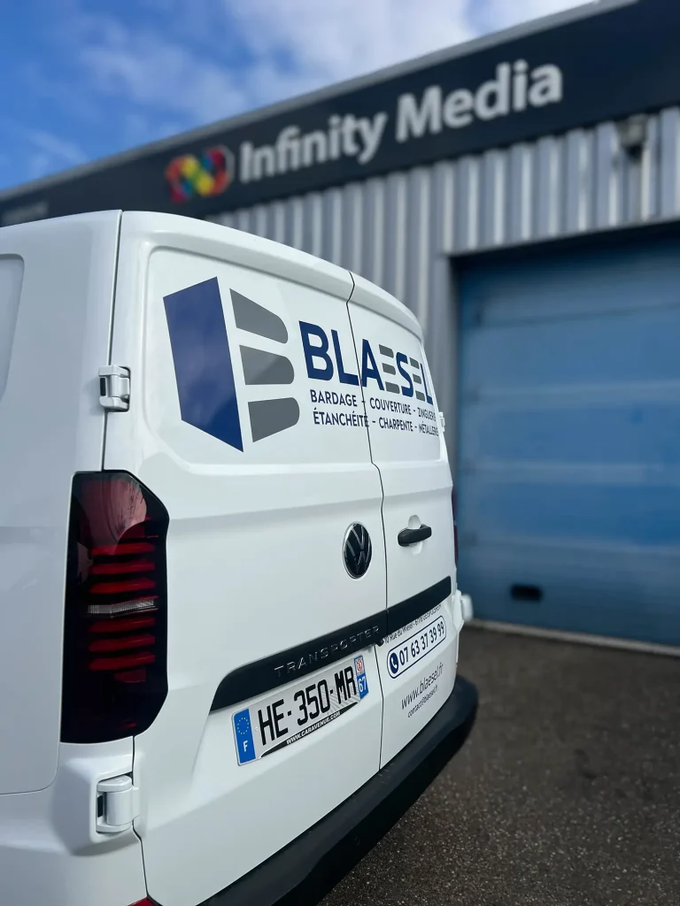 À Geispolsheim dans le Bas-Rhin, de plus en plus d’entreprises choisissent de marquer leurs véhicules utilitaires. Notre équipe d’Infinity Media vient de finaliser le marquage d’un véhicule utilitaire professionnel pour la société BLAESEL, une entreprise de couverture bâtiment en Alsace. Pourquoi ? Parce que le marquage véhicule est un moyen efficace de promouvoir votre société tout en vous rendant visible sur la route. Nous comprenons l’importance d’une image de marque forte et cohérente. Notre équipe est spécialisée dans le flocage véhicule et le covering, offrant des prestations sur mesure pour répondre à vos besoins.